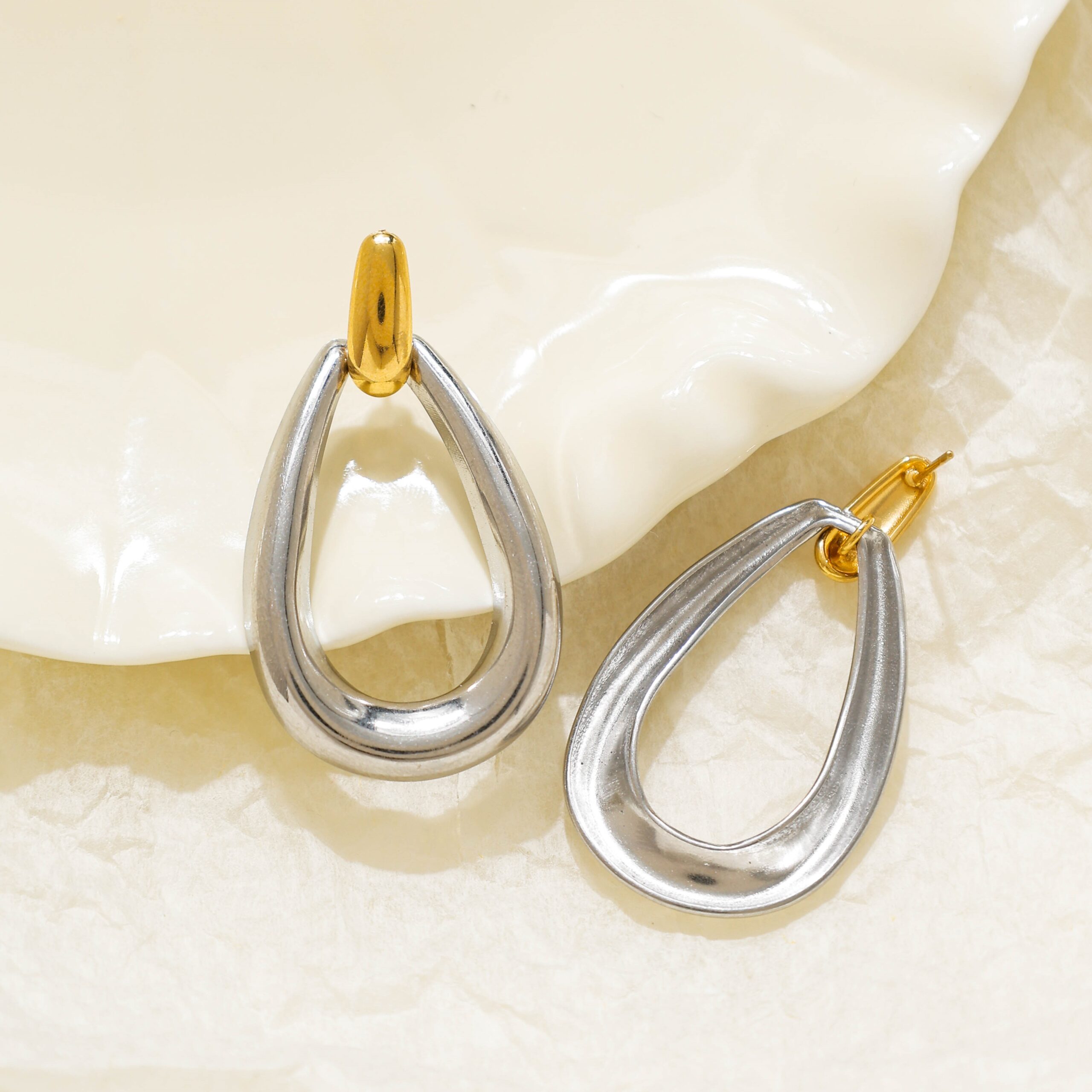Minimalist Two - Tone Teardrop EarringsMinimalist Two – Tone Teardrop Earrings