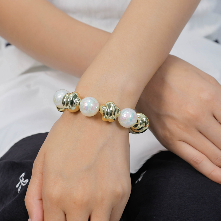 Mixed-color Pearl Irregular Spiral Accessory Stainless Steel Bracelet