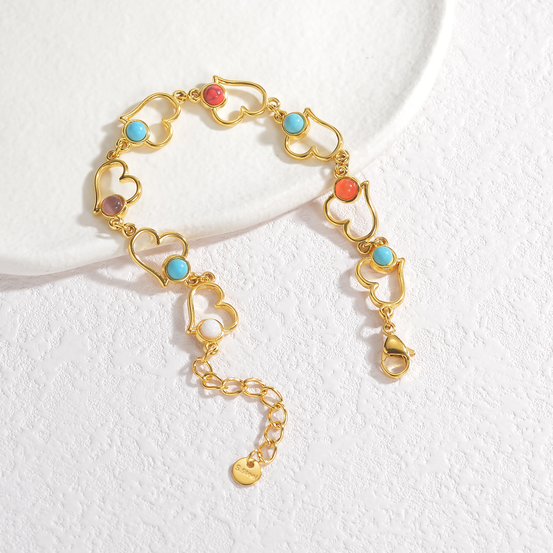 Multi-element Colored Turquoise Bracelet, with Hearts