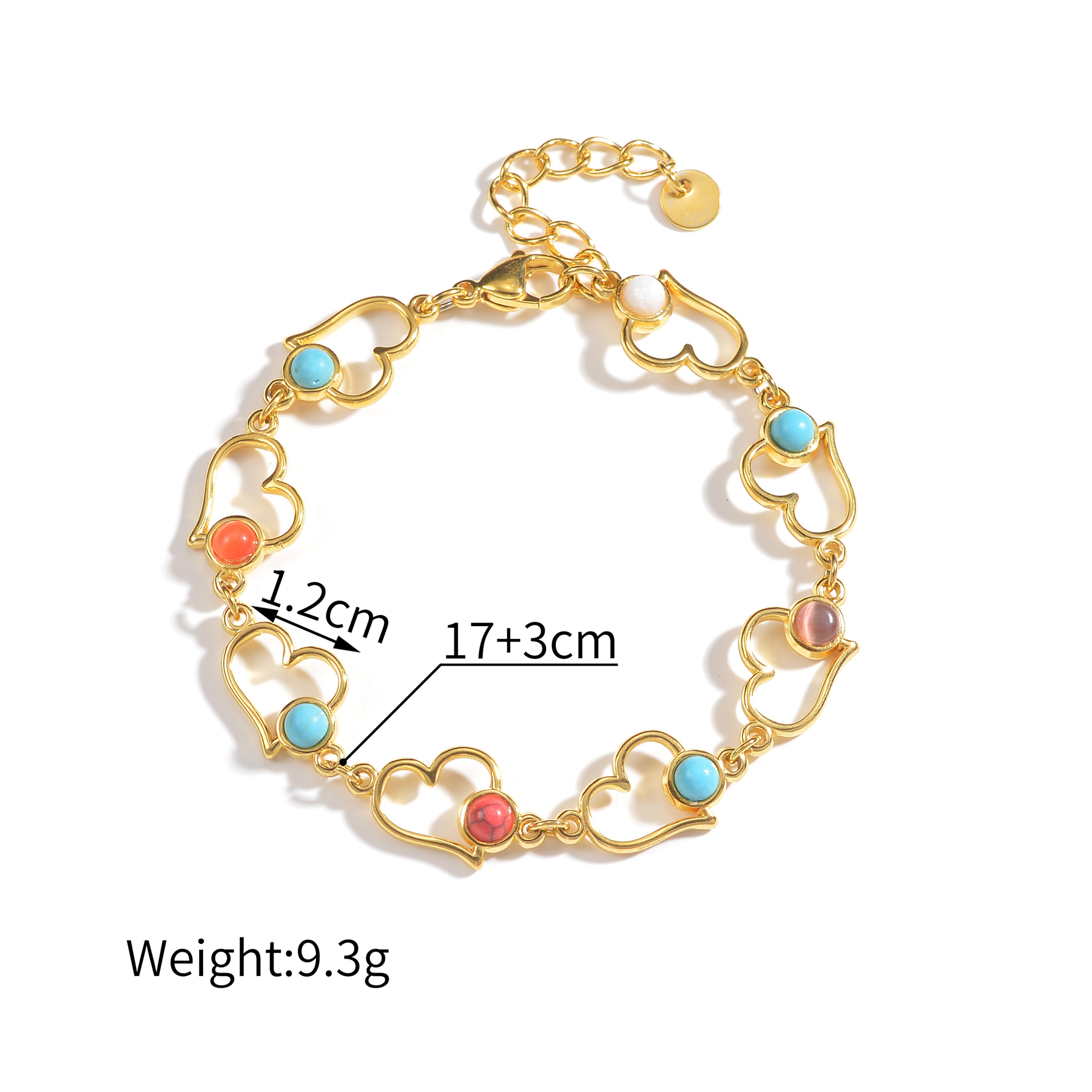 Multi-element Colored Turquoise Bracelet, with Hearts Original price was: $4.00.$3.60Current price is: $3.60.