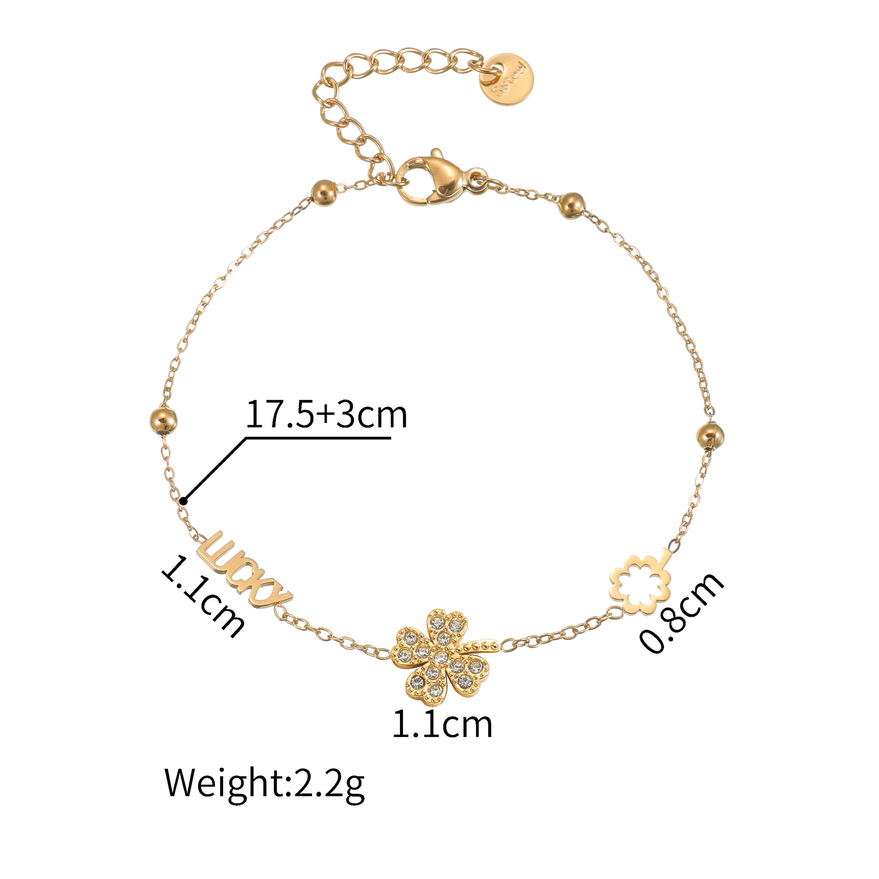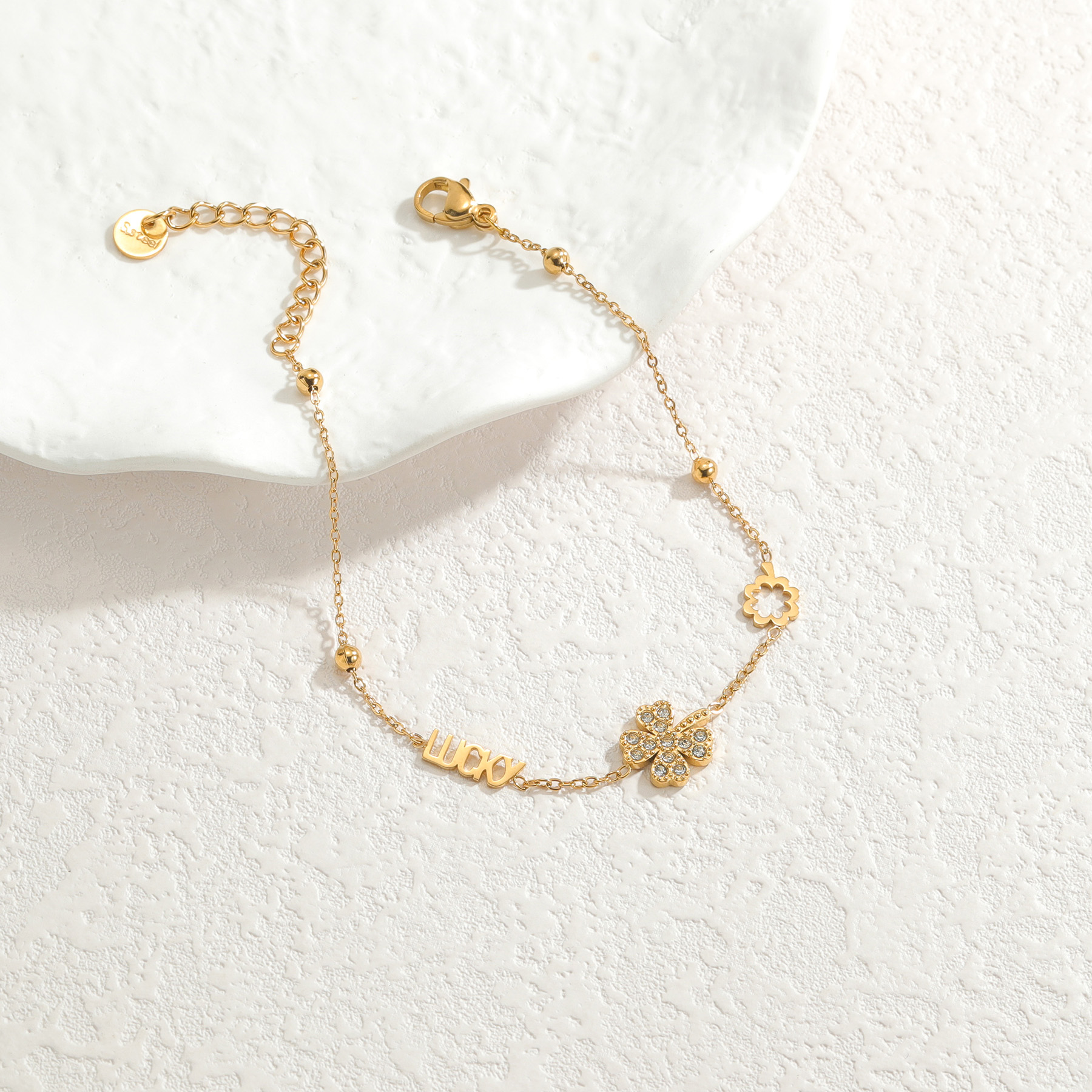 Multi-element Four-Leaf Clover and Letter Bracelet Original price was: $2.00.$1.70Current price is: $1.70.