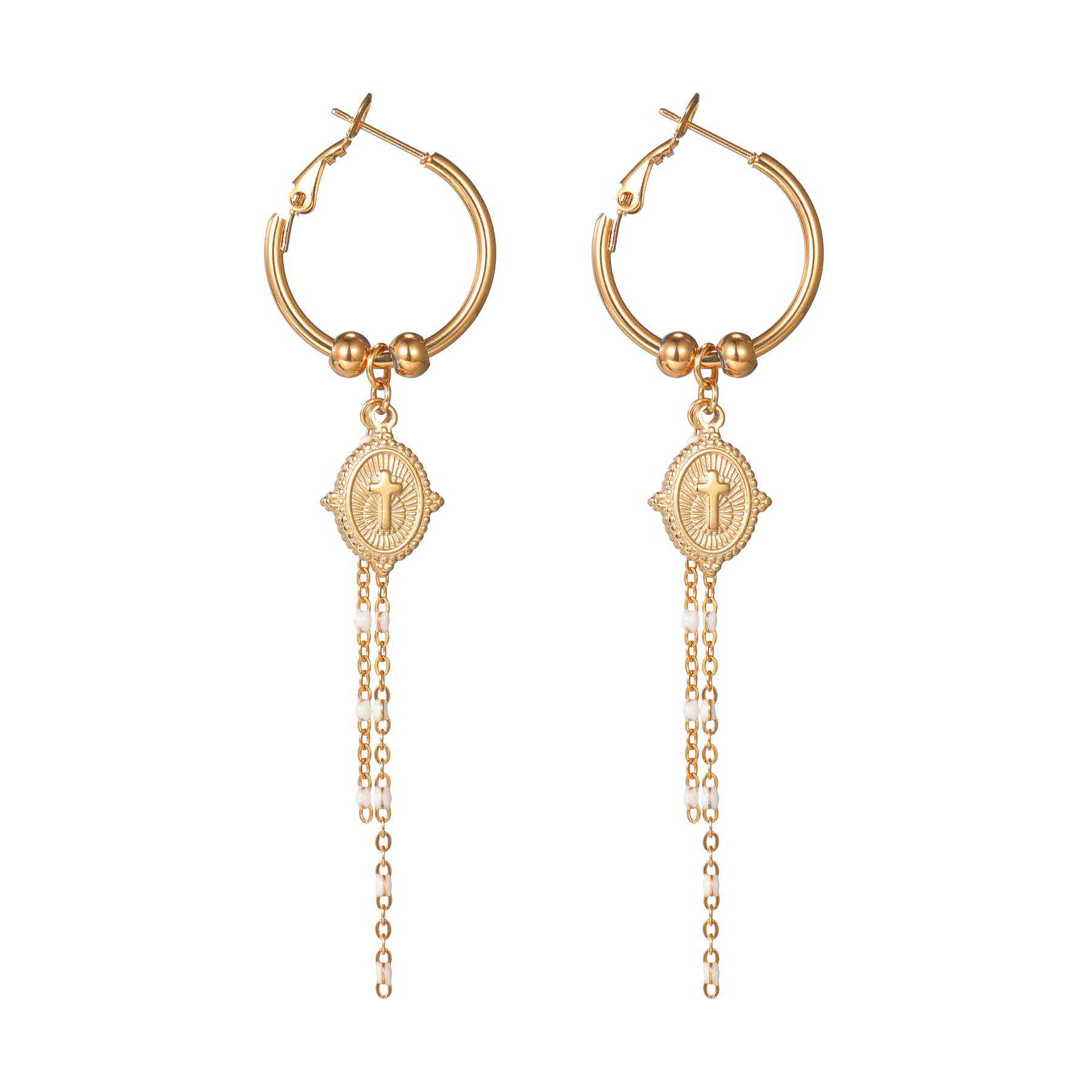 Multi-element Pendant Tassel Earrings, Cross Shield Original price was: $3.00.$2.00Current price is: $2.00.