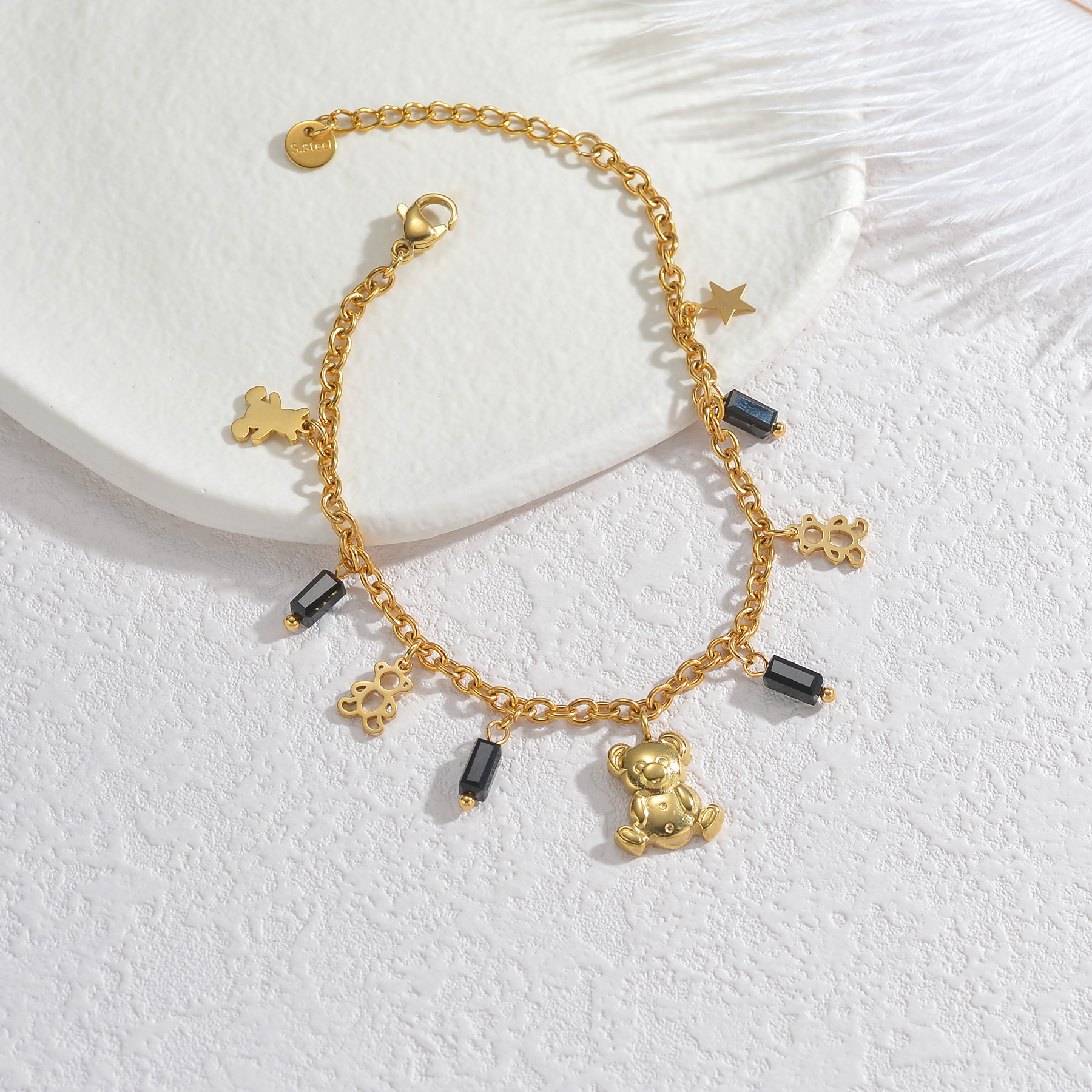 Multi-element Small Pendant Bracelet, Black with Bear Element