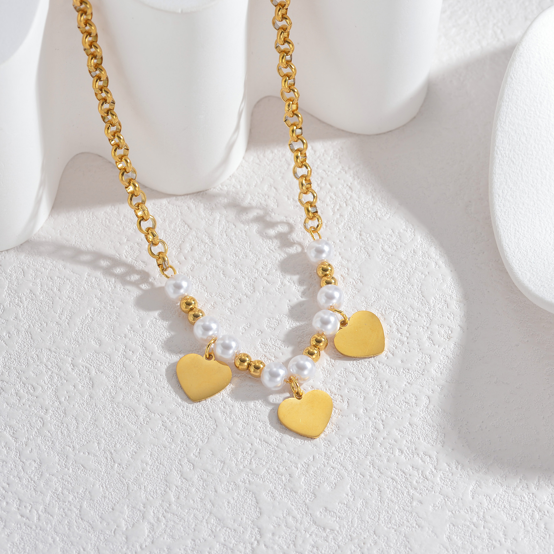 Multi-Element Small Pendant Pearl Necklace, Heart DesignMulti-Element Small Pendant Pearl Necklace, Heart Design