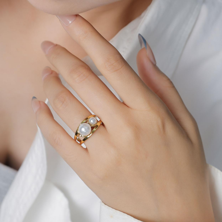 Office Style Stainless Steel Pearl Ring