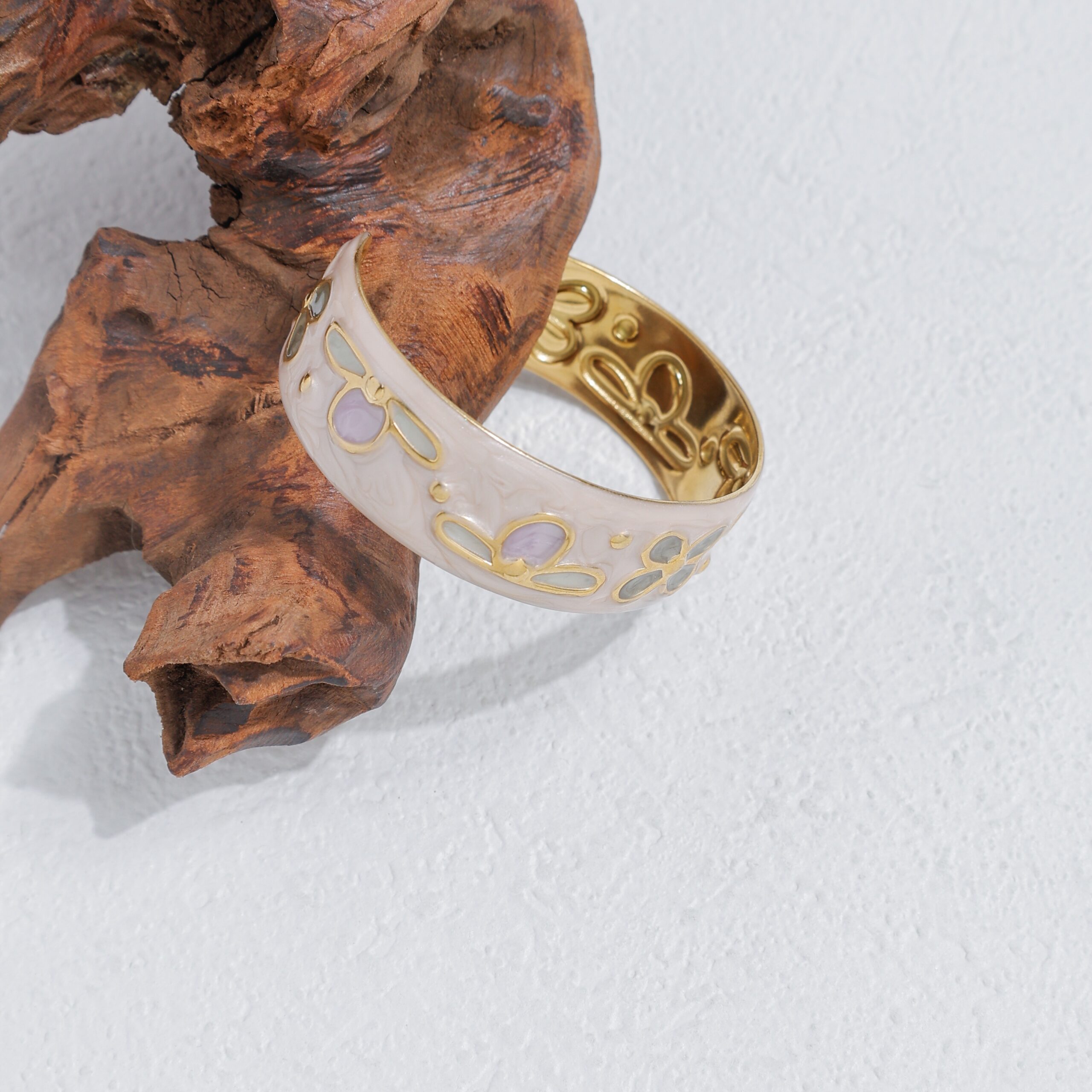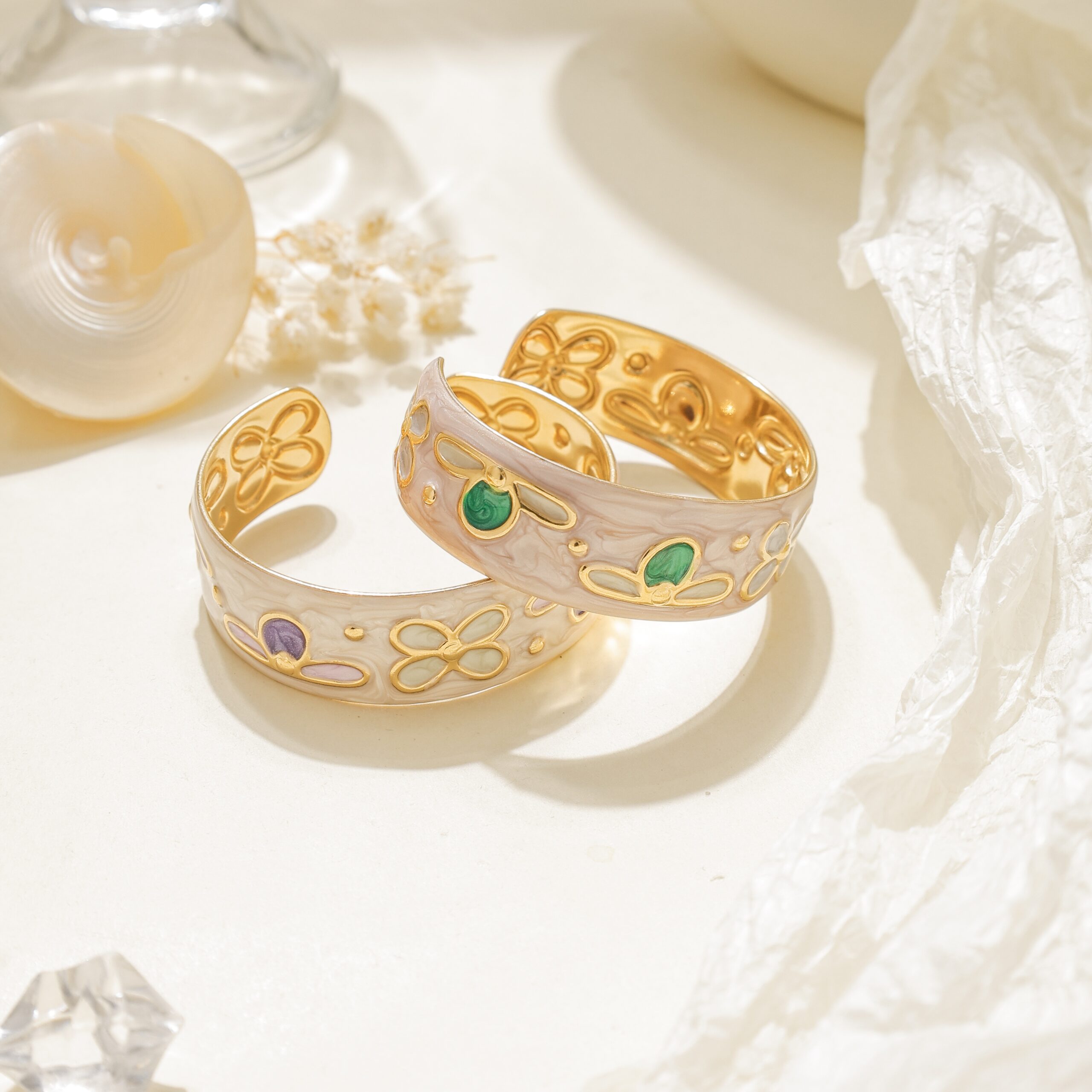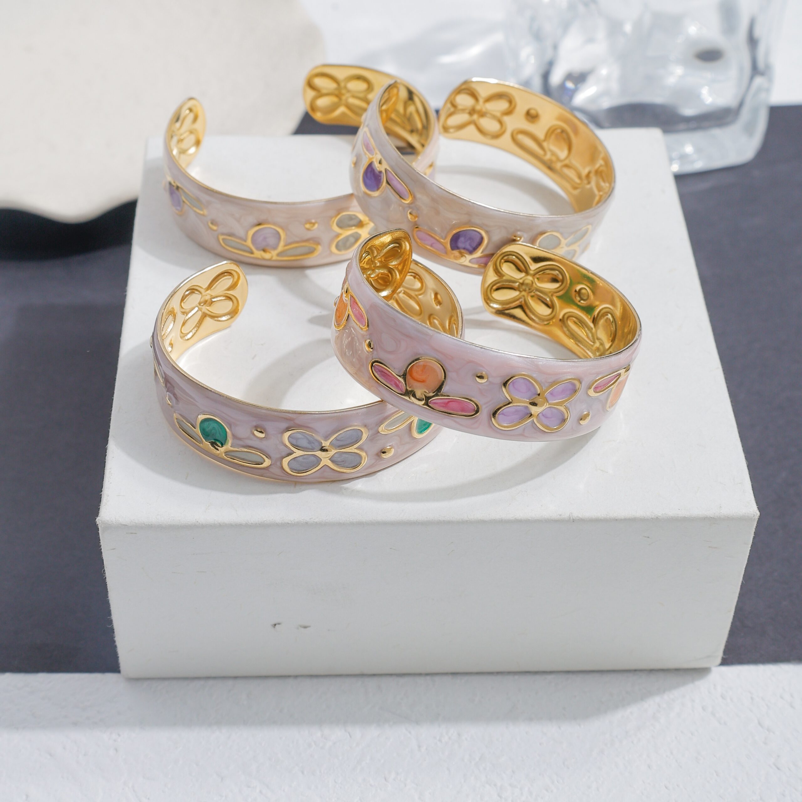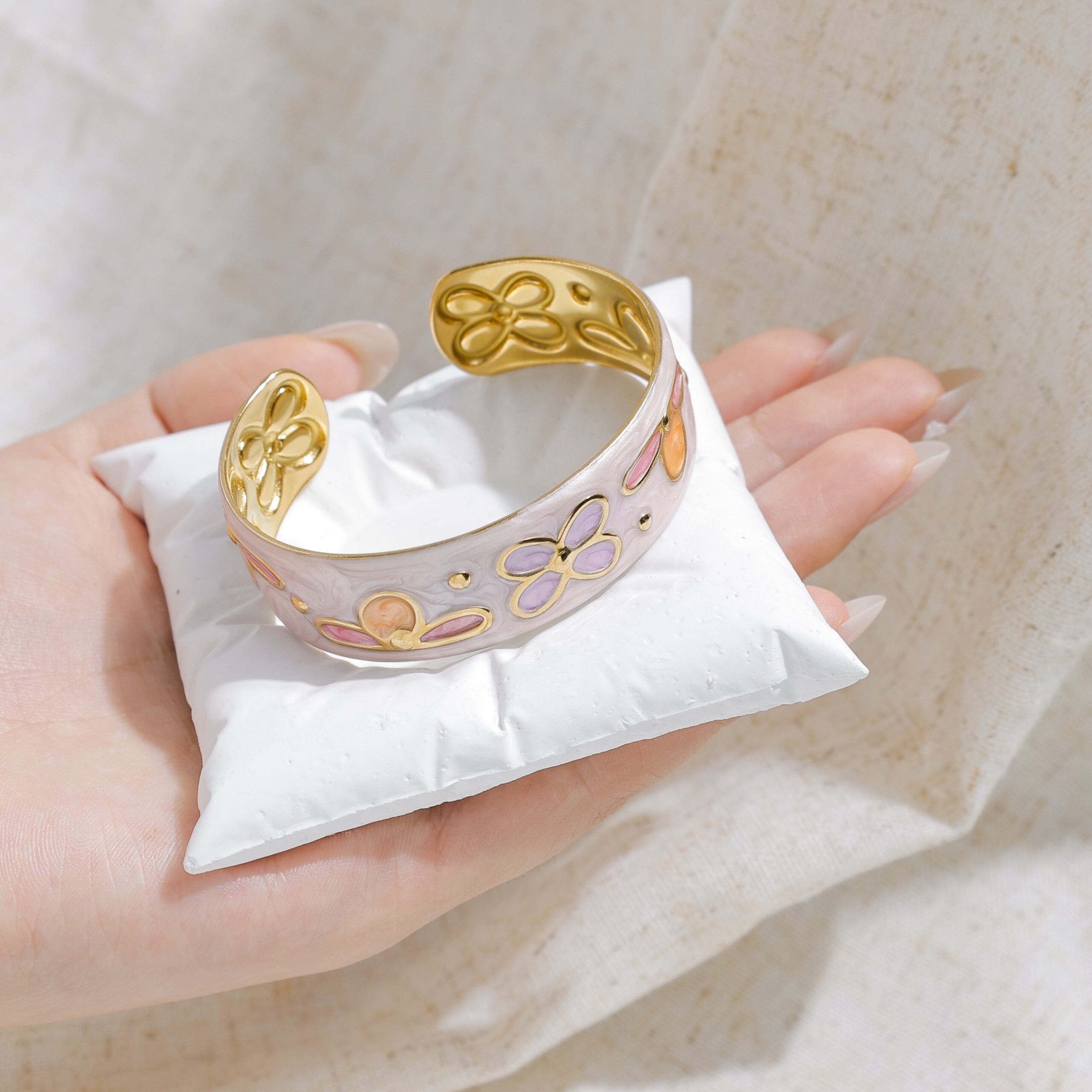 Pastel – Colored Butterfly & Flower Gold – Trimmed Cuff Bracelet