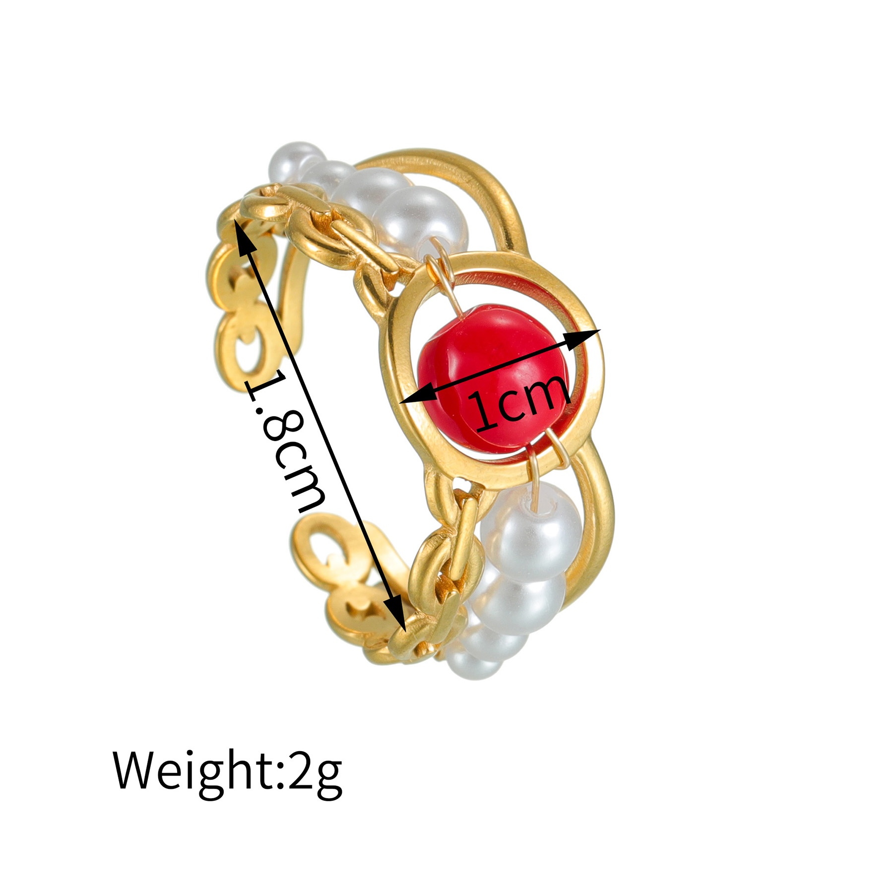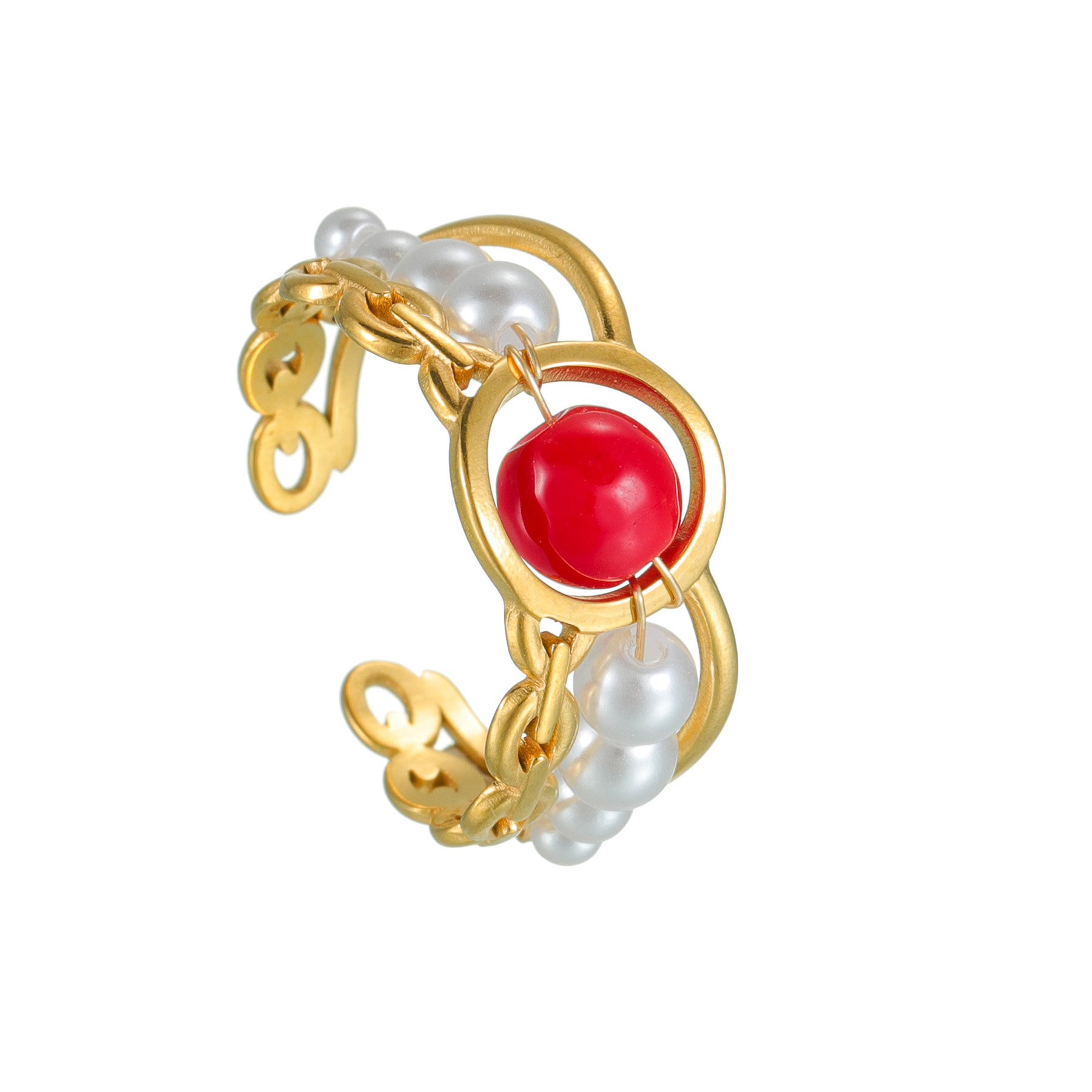 Pearl Round Bead Open Ring, Red