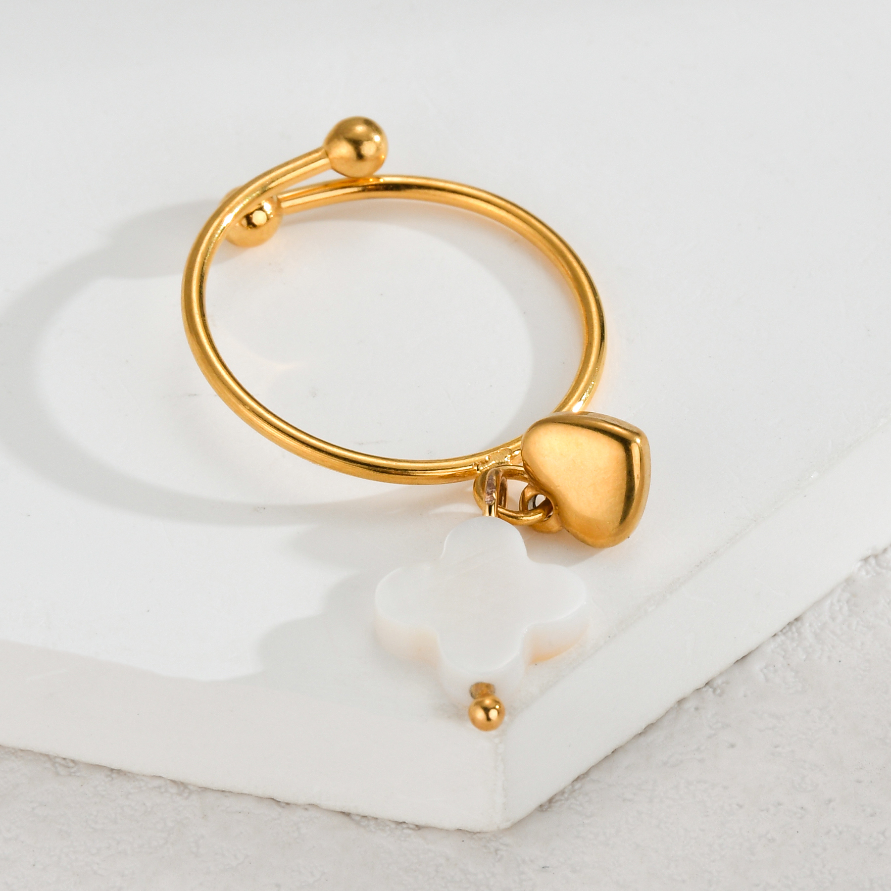 Shell Small Pendant Ring, Four-Leaf Clover Design