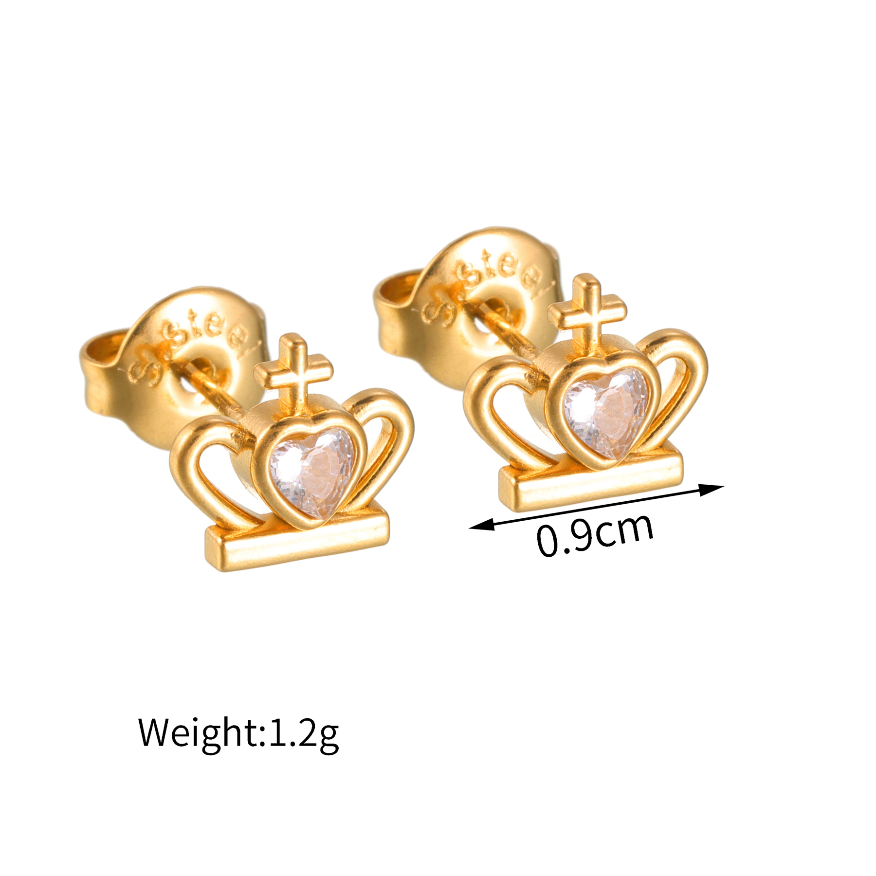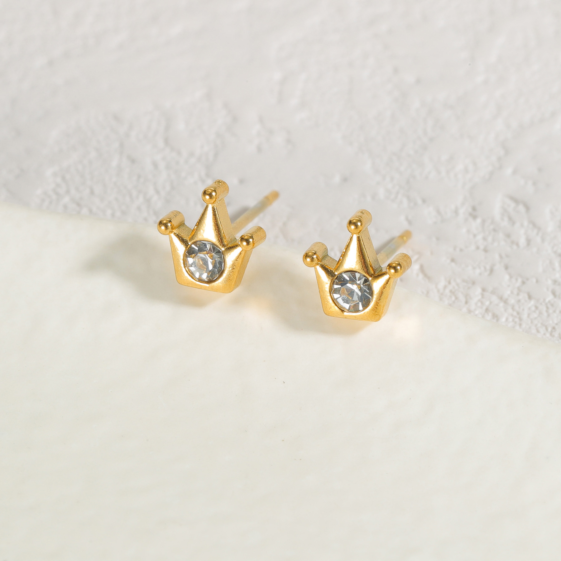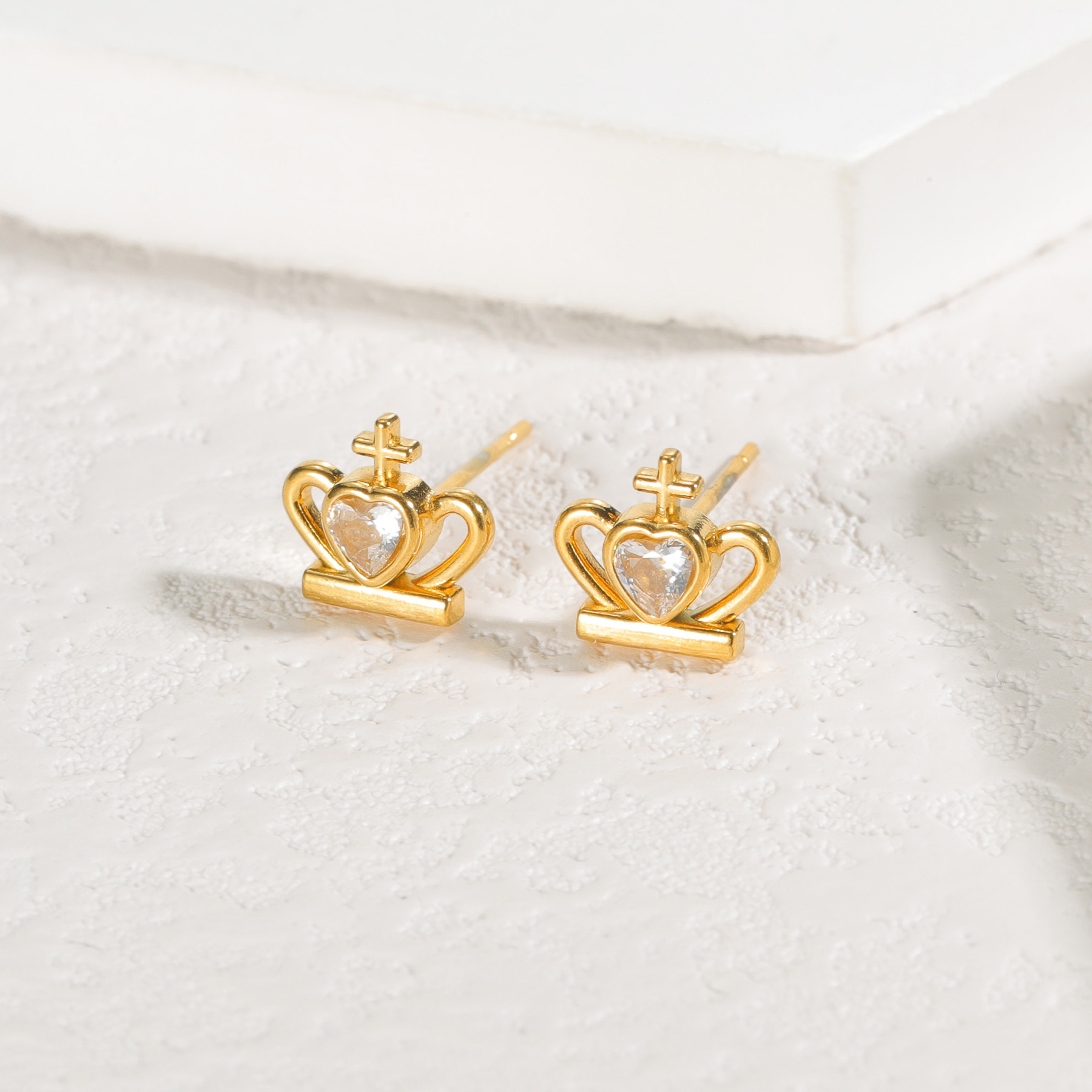 Simple Diamond-Embedded Crown Stud Earrings, Gold