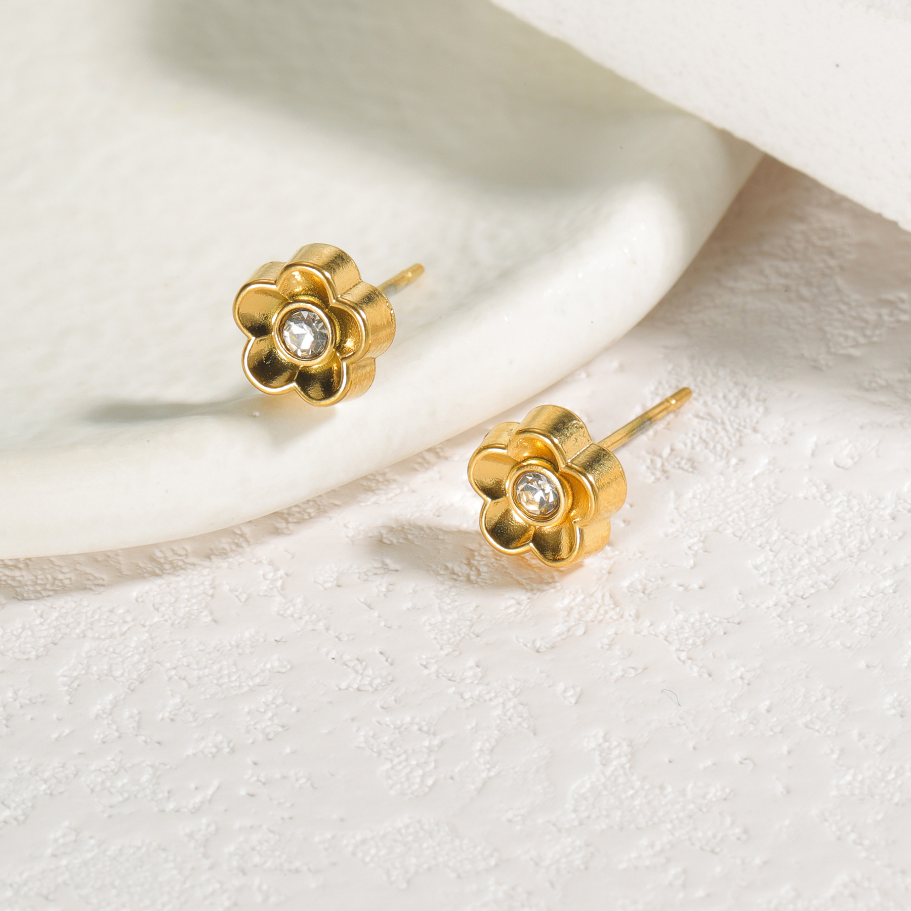 Simple Diamond-Embedded Flower Stud Earrings, Gold, Single-Diamond Style Original price was: $2.00.$1.00Current price is: $1.00.