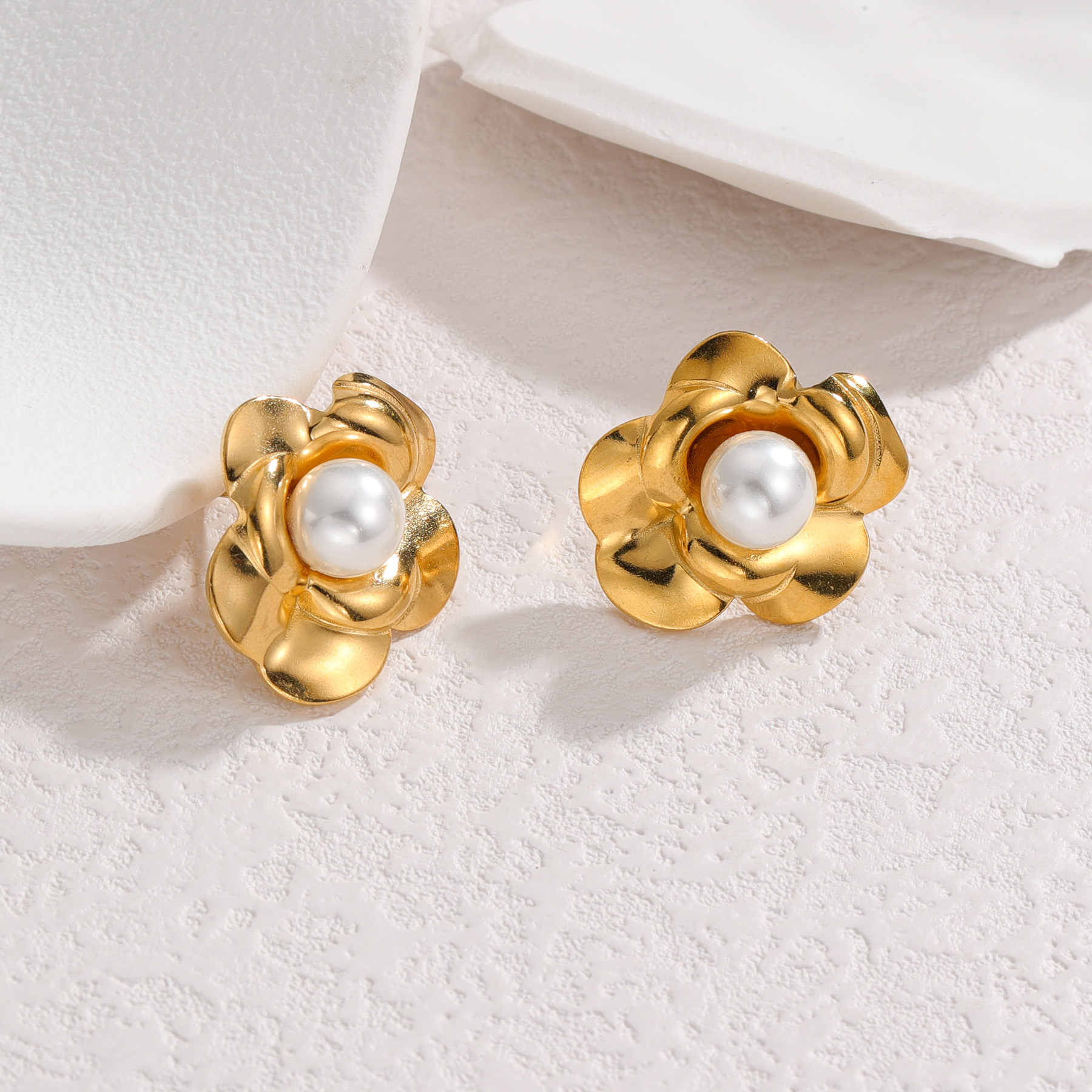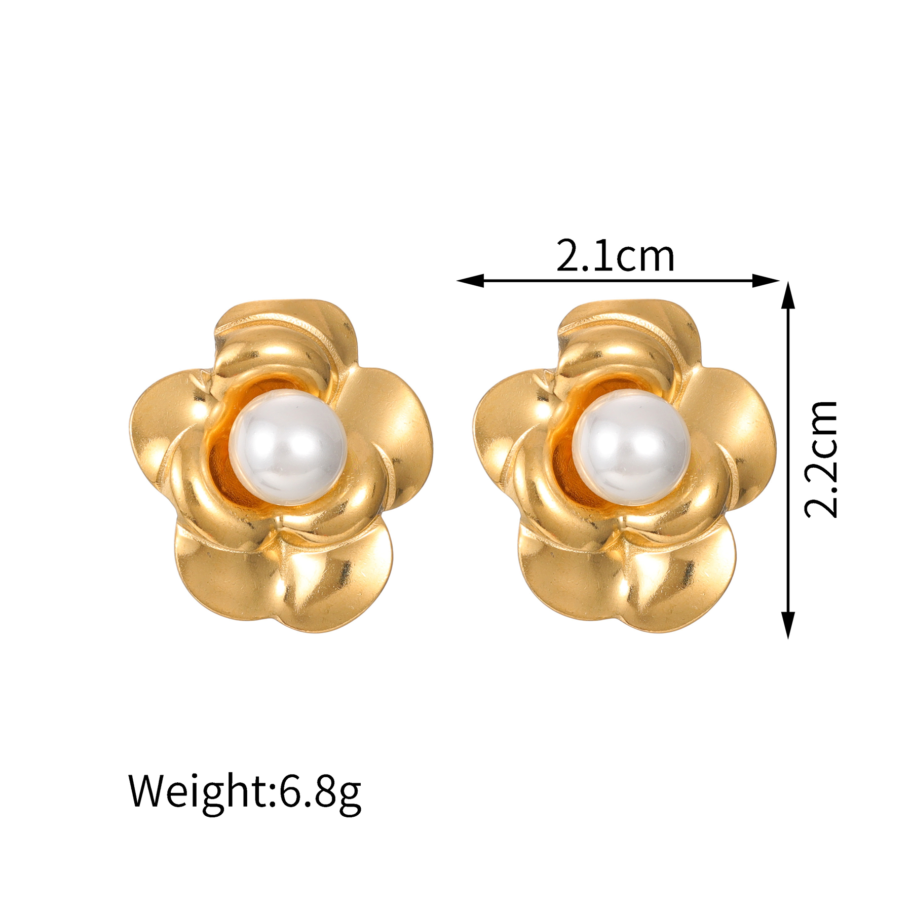 Summer New Shell Irregular Ocean Beach Style Stainless Steel Pearl Earrings