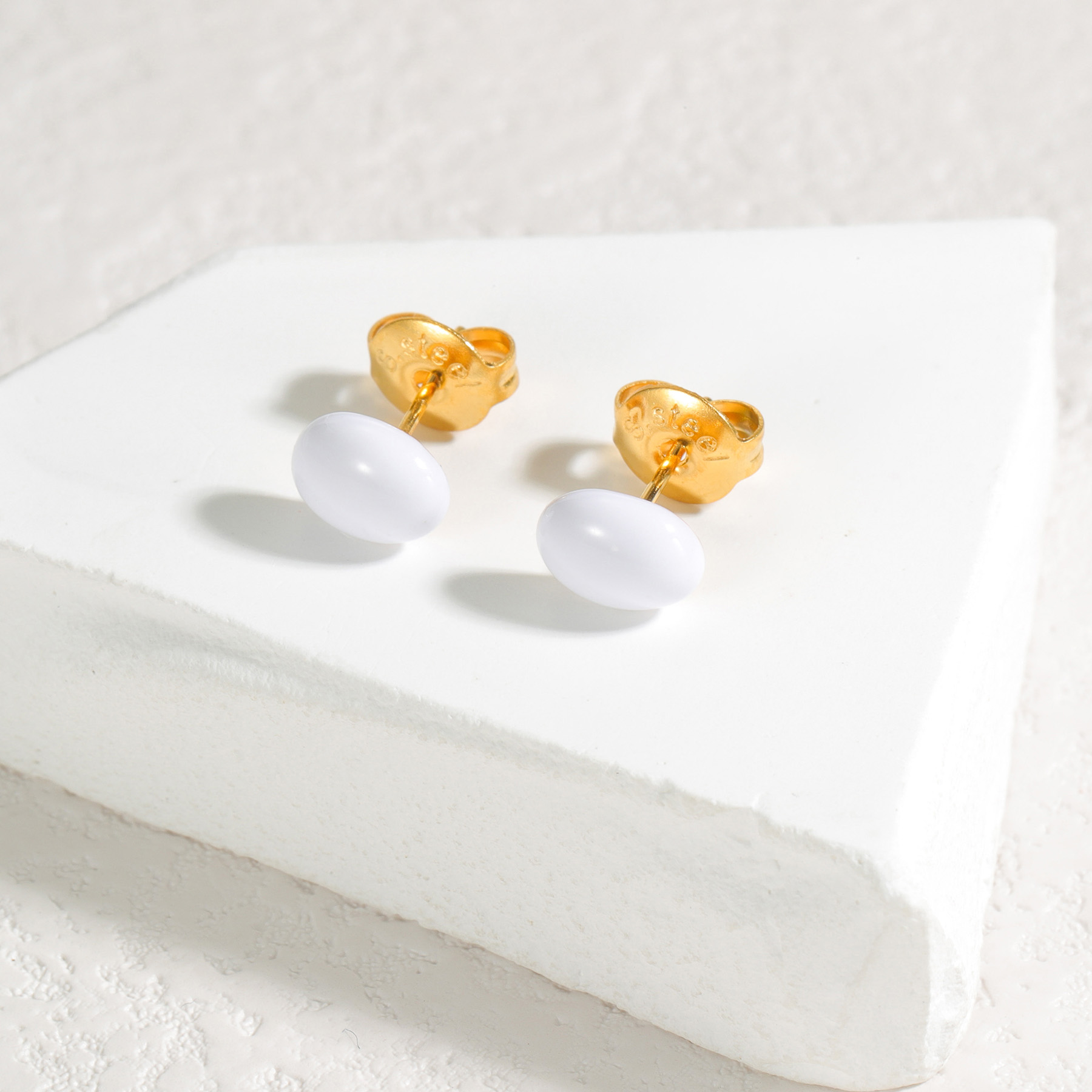 Simple Oil-Dropped Oval Small Stud Earrings, White