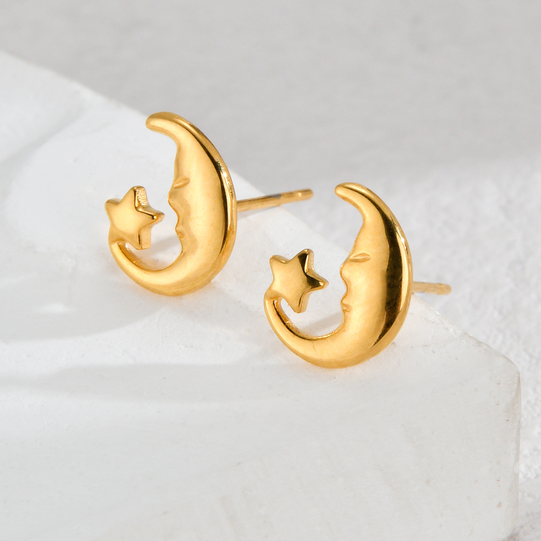 Starry Sky Series Small Pattern Earrings, Star and Moon Design