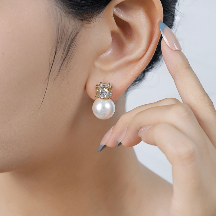Stylish and high-end diamond-encrusted stainless steel pearl earringsStylish and high-end diamond-encrusted stainless steel pearl earrings