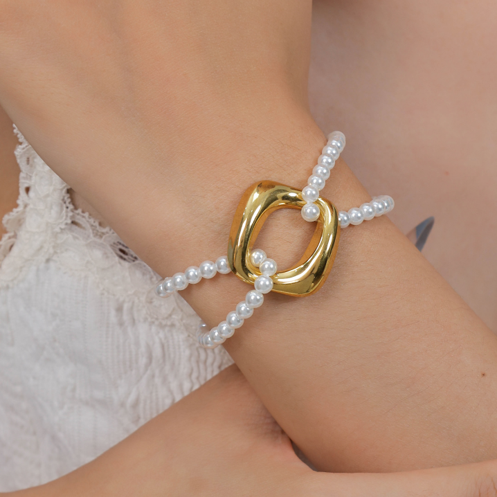 Stylish Square Accessory Double-layer Pearl Bracelet