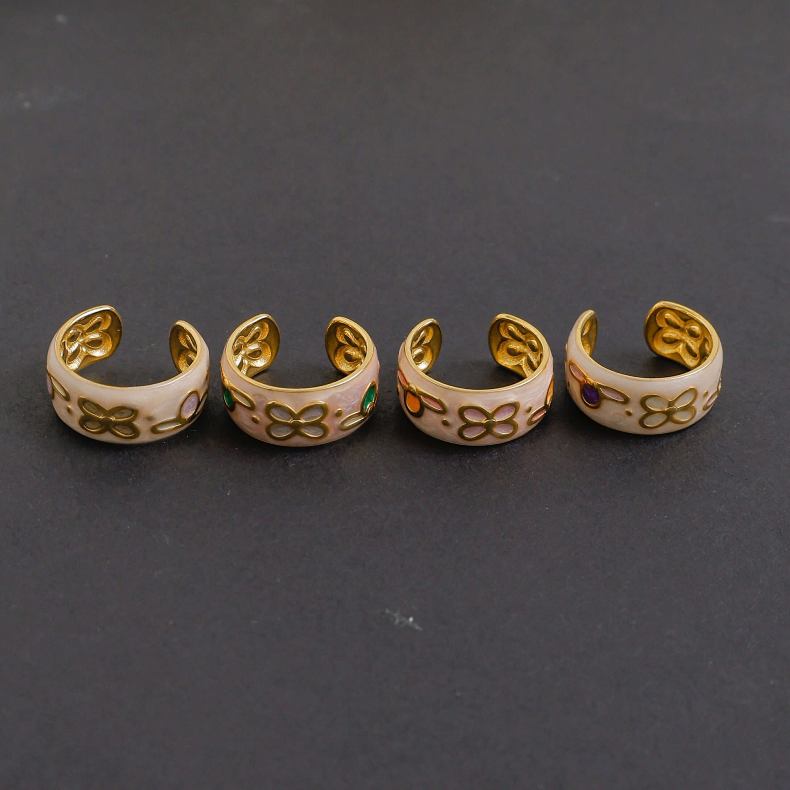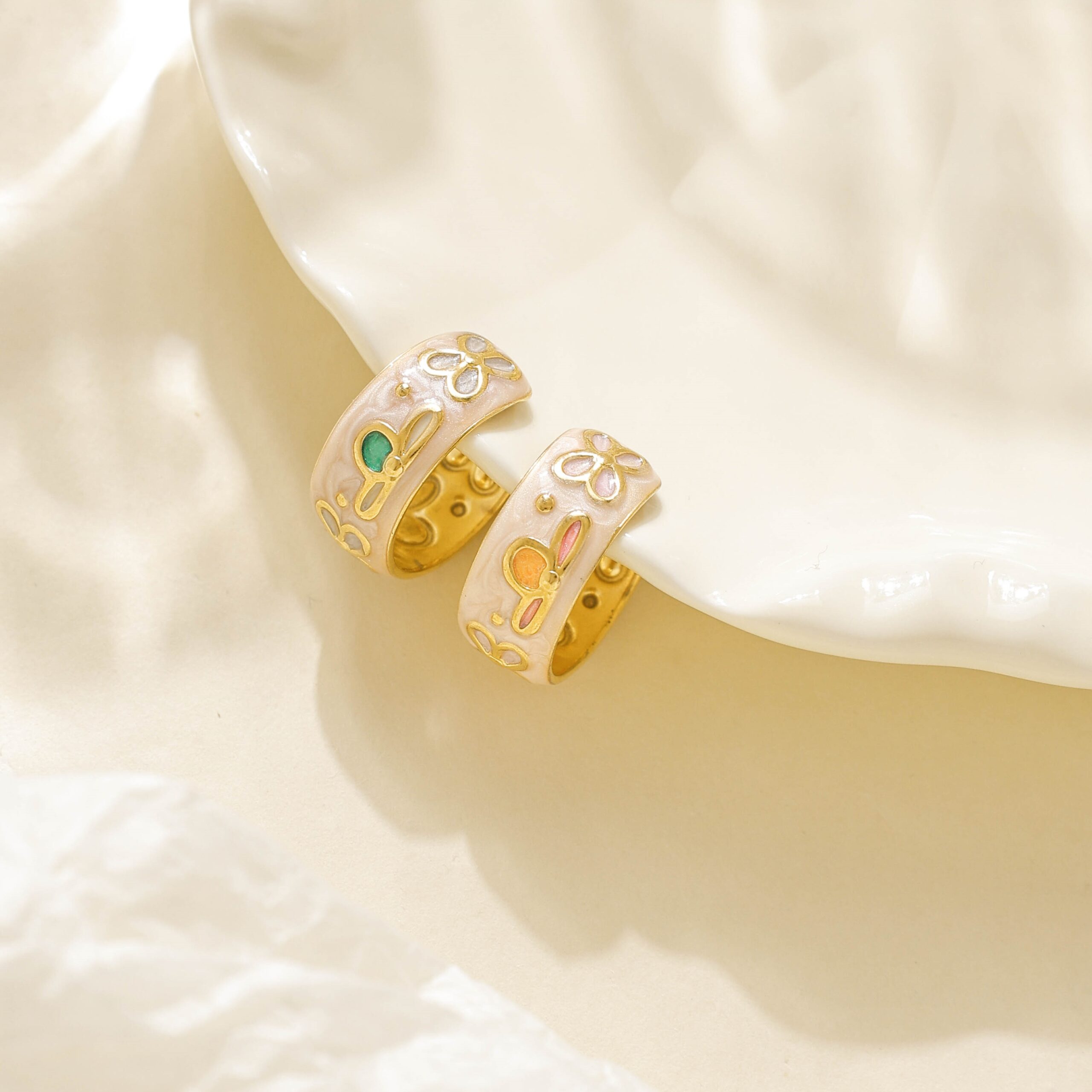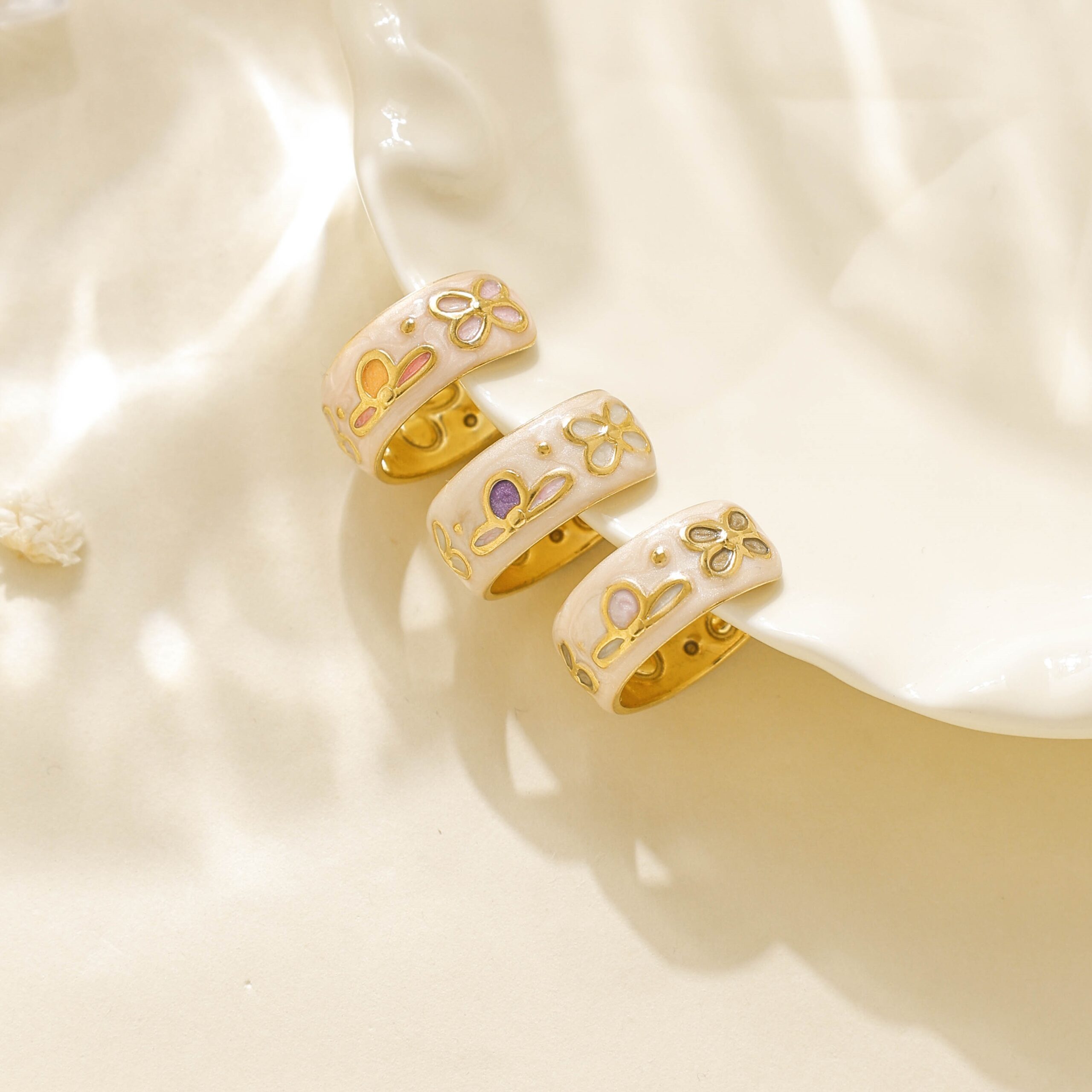 Sweet – Style Gold – Tone Enamel Flower & Butterfly Rings