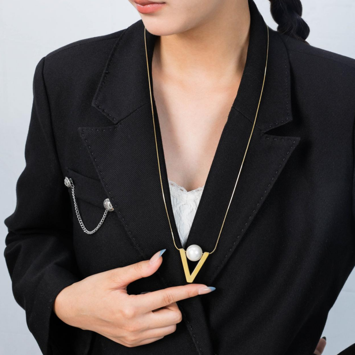 Versatile long V-shaped pearl necklace sweater chain