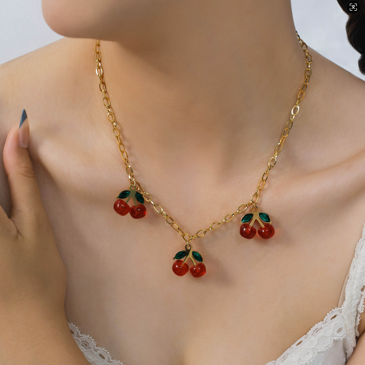 Vintage, Fresh and Stylish Cherry Pendant Stainless Steel Necklace