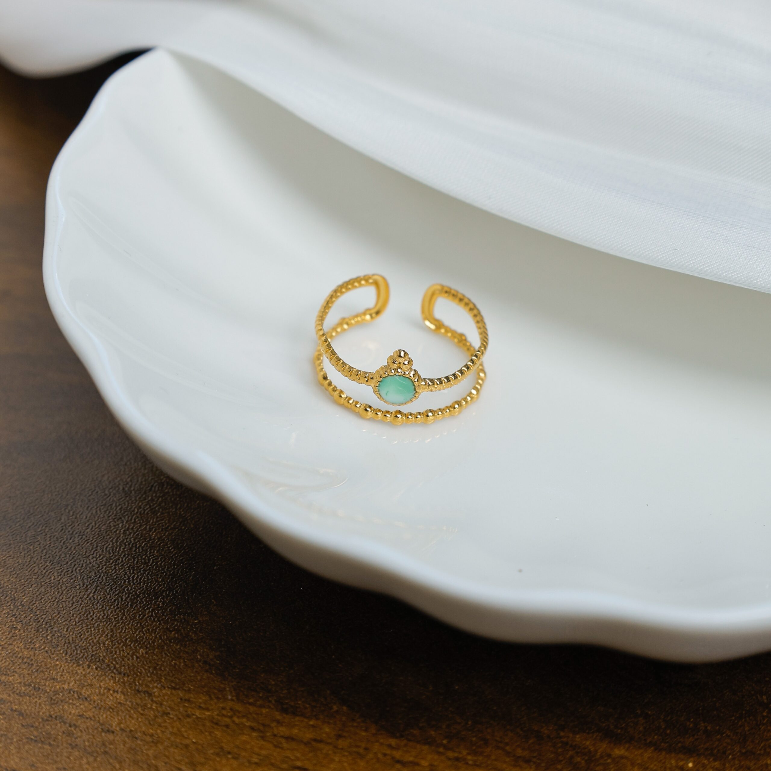 Vintage – Style Gold – Tone Double – Band Ring with Light Green Gem