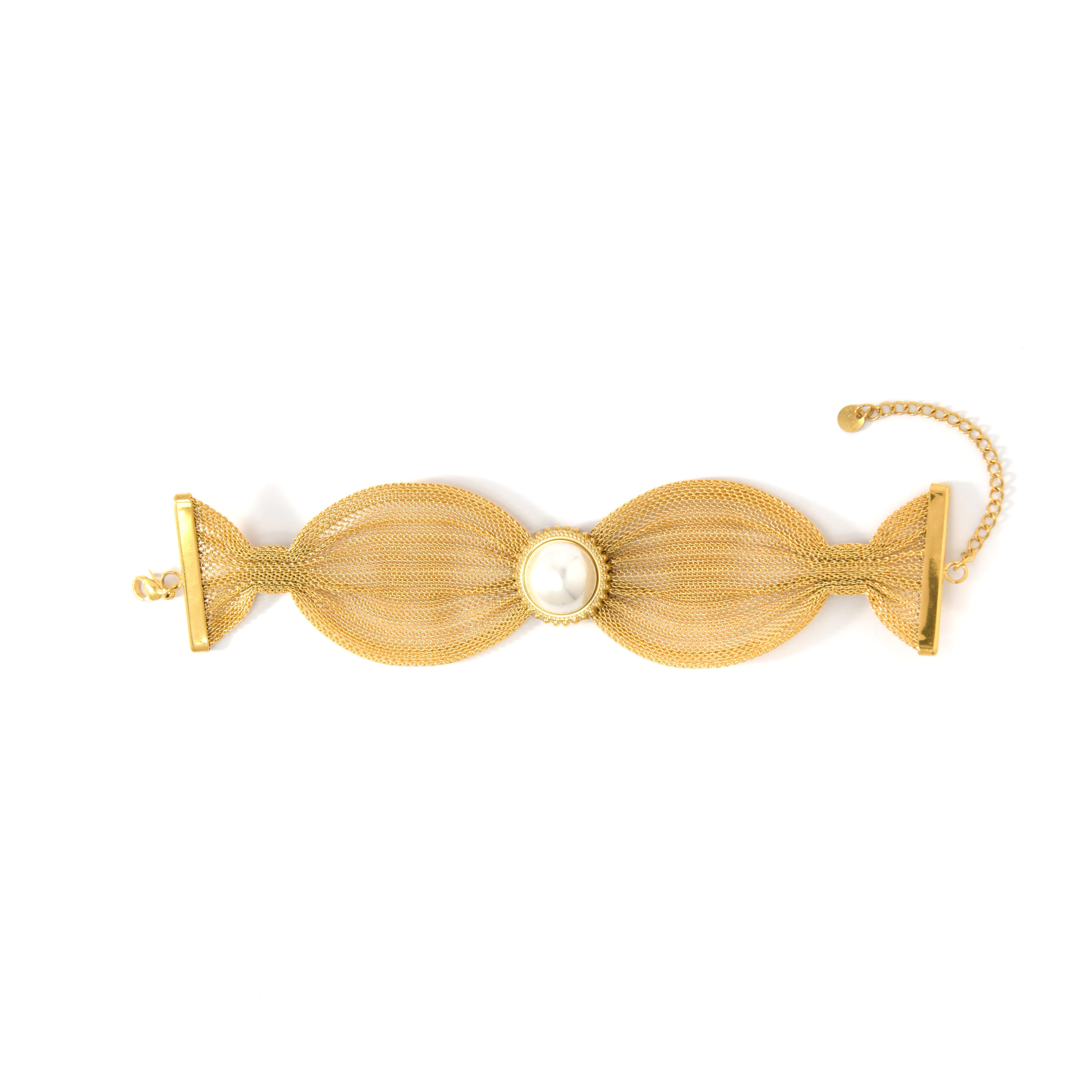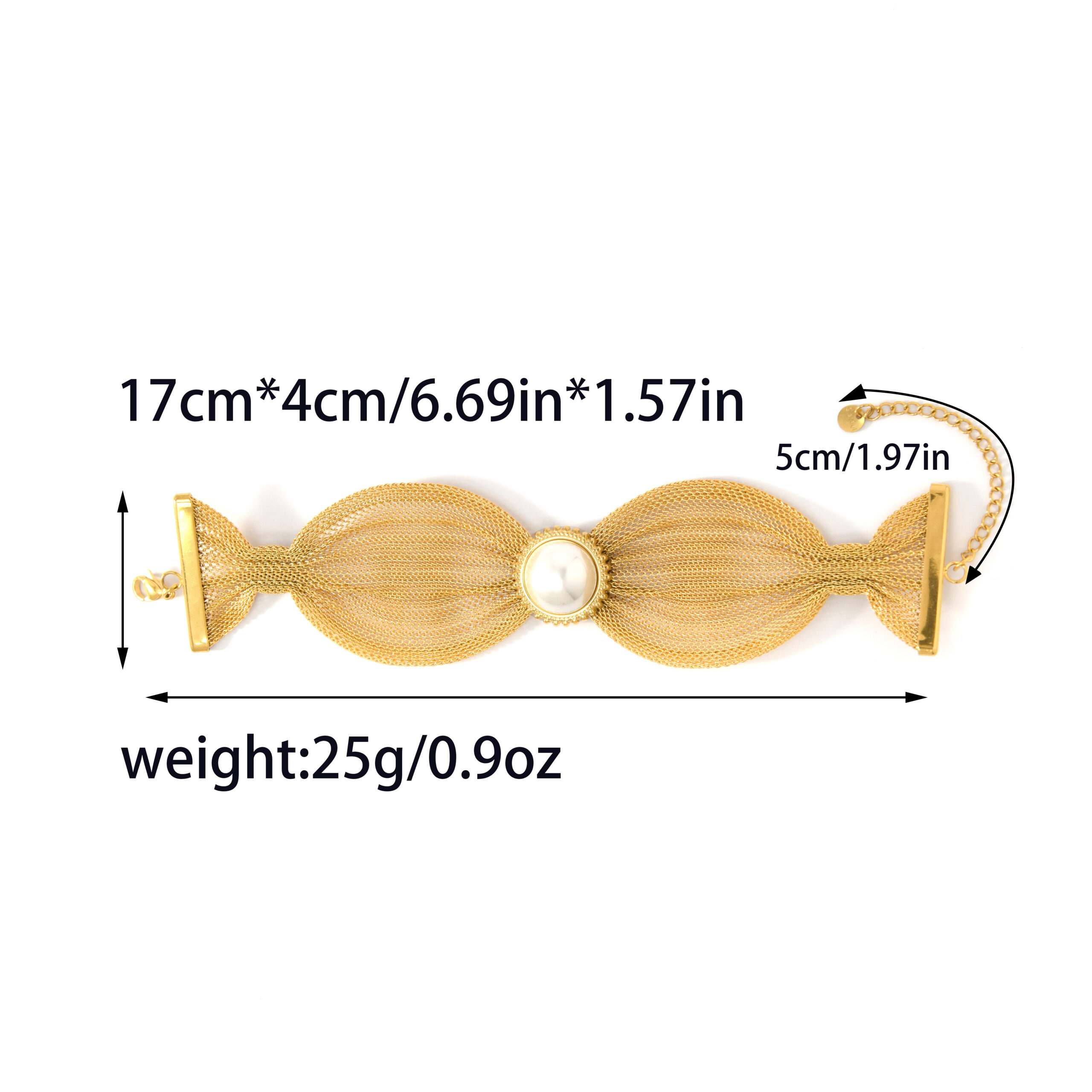 Wide and Stylish Stainless Steel Pearl Bracelet with a Grand Aesthetic Original price was: $6.00.$5.00Current price is: $5.00.