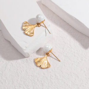 Ginkgo Leaf Pearl Earrings