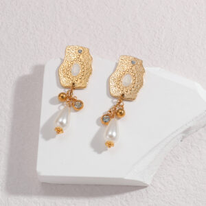 Irregular Geometric Pearl-Drop Earrings, Round Shape