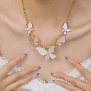 Butterfly Garden: Insect Element Butterfly Stainless Steel Oil-Drip Colored Necklace