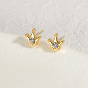 Simple Diamond-Embedded Crown Stud Earrings, Gold
