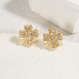 Simple Diamond-Embedded Four-Leaf Clover Stud Earrings, Gold